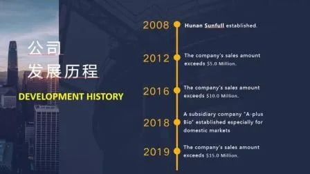 Hunan Sunfull Bio-tech Co., Ltd. เป็นองค์กรไฮเทคที่มีประสบการณ์ระดับมืออาชีพกว่า 20 ปี เชี่ยวชาญด้านการวิจัยและพัฒนา การผลิต และการขายสารสกัดจากพืชธรรมชาติ บริษัทได้รับการรับรอง ISO9001, ISO22000/HACCP, KOSHER และ HALAL และได้รับรางวัล National Grade II Prize และ Provincial First Prize เครื่องหมายการค้าที่รู้จักกันดี ได้แก่ Sunfullbio, Sunepica™ และ Teavital™